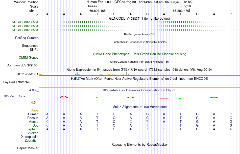 - USF1[chr14:66893462-66893473]