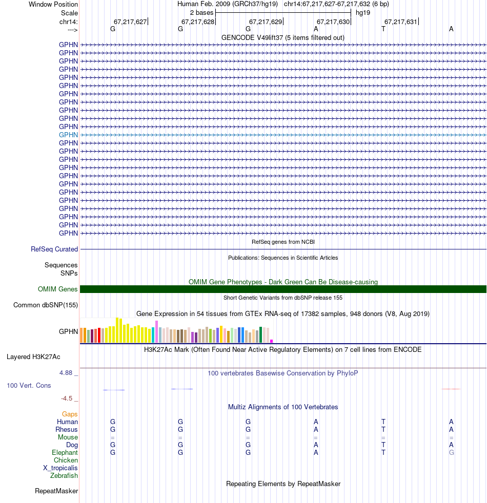 - GATA2[chr14:67217627-67217632]