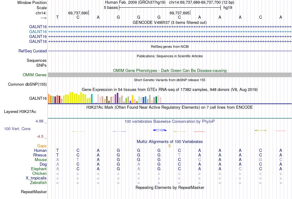 - FOXA1[chr14:69737689-69737700]