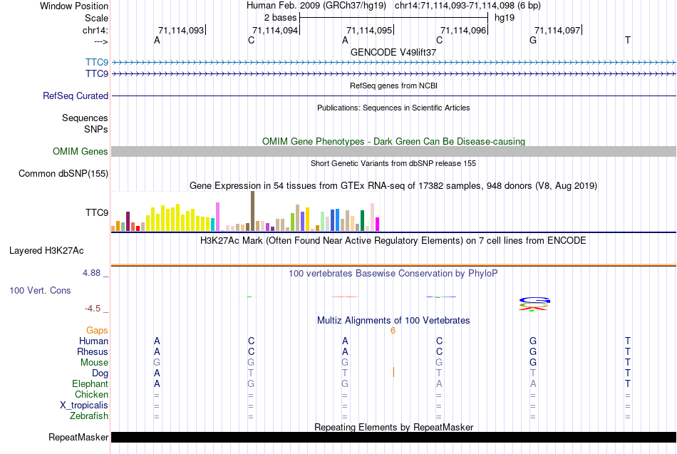 - USF1[chr14:71114093-71114098]