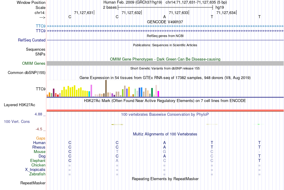 - YY1[chr14:71127631-71127635]