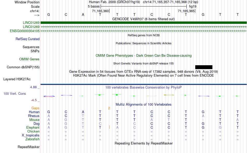 - ELF5[chr14:71165357-71165368]