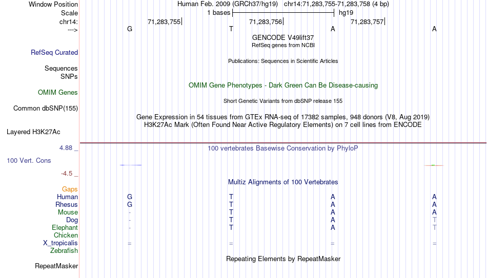 - MYB[chr14:71283755-71283758]