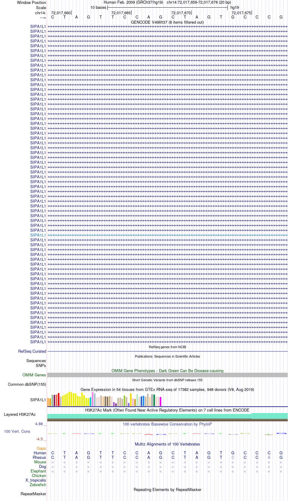 - CTCF[chr14:72017659-72017678]