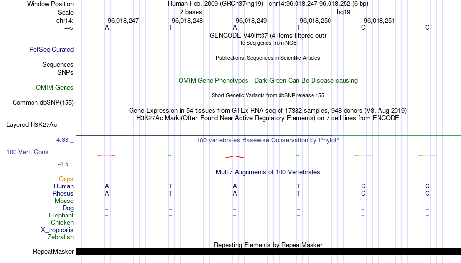 - GATA2[chr14:96018247-96018252]