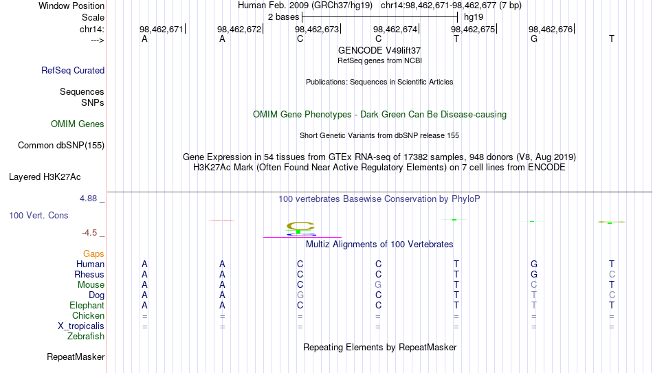 - PTF[chr14:98462671-98462677]