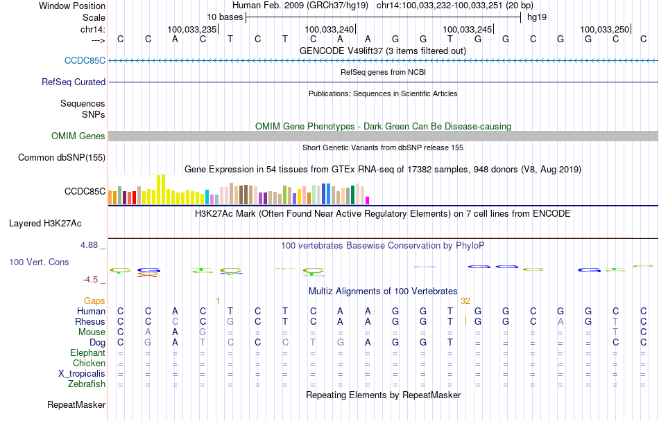 - CTCF[chr14:100033232-100033251]