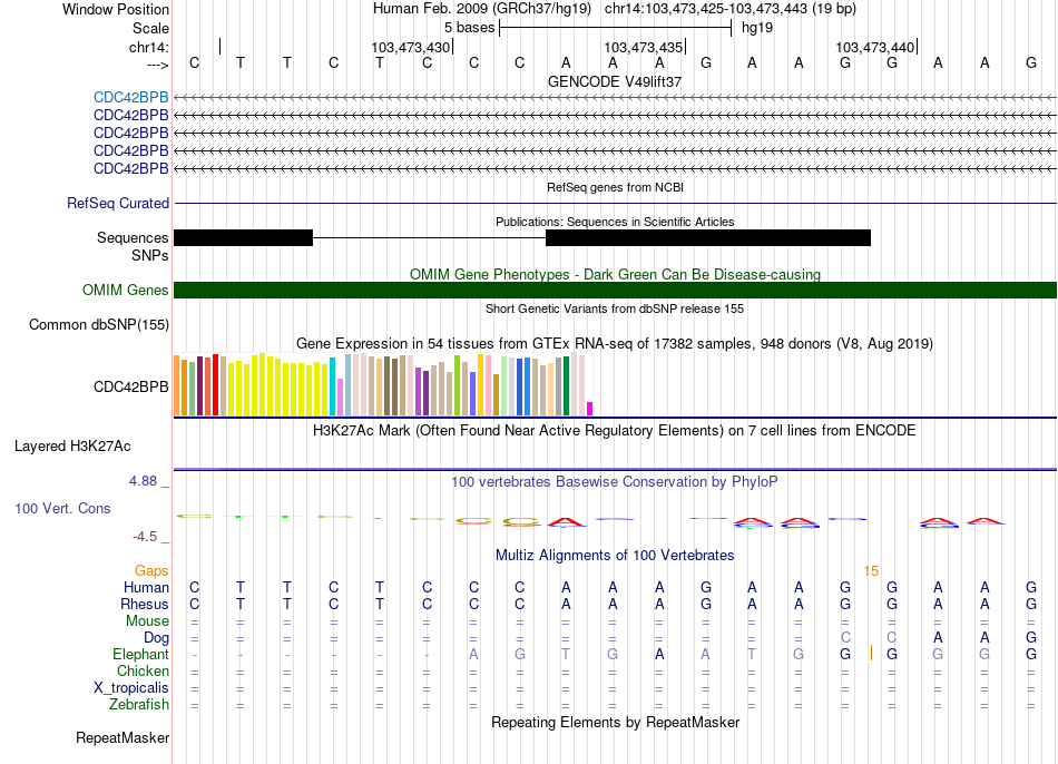 - SRF[chr14:103473425-103473443]