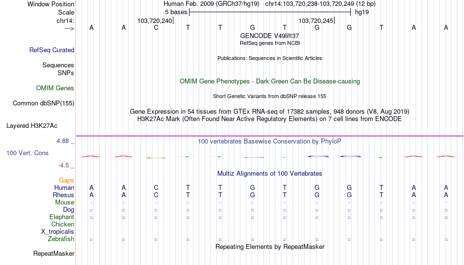 - RUNX1[chr14:103720238-103720249]