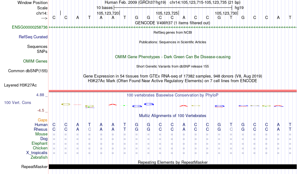 - ESR1[chr14:105123715-105123735]
