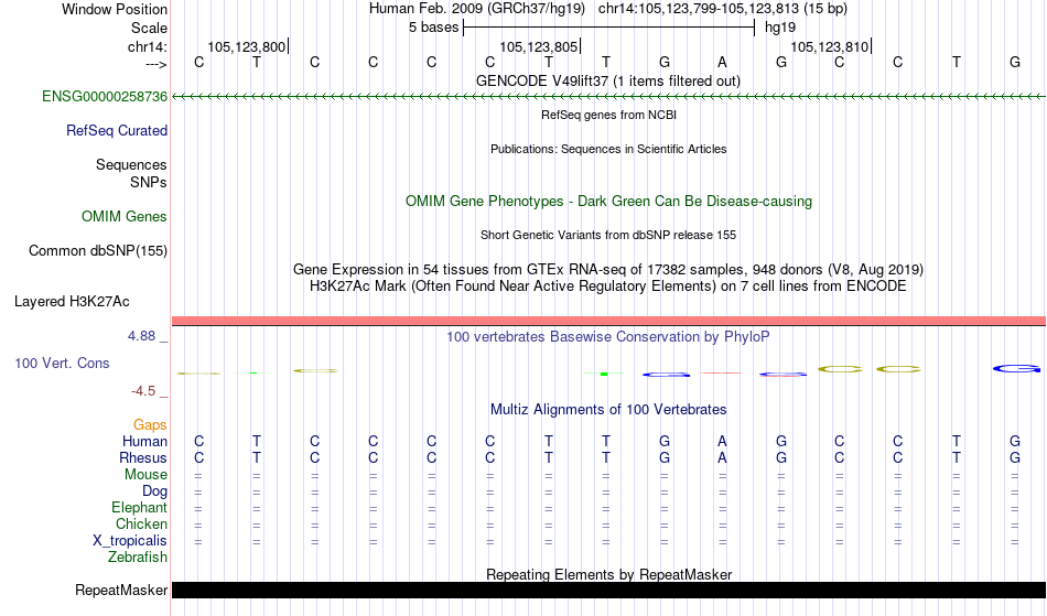 - PLAG1[chr14:105123799-105123813]