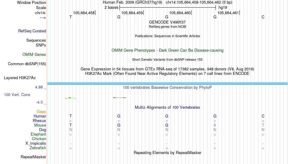 - LFA1[chr14:105664458-105664462]