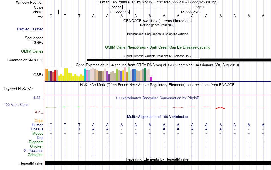 - FOXP1[chr16:85222410-85222425]