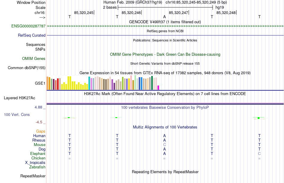 - YY1[chr16:85320245-85320249]