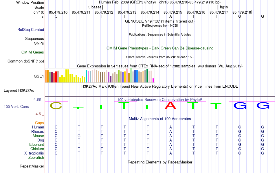 - CDX1[chr16:85479210-85479219]