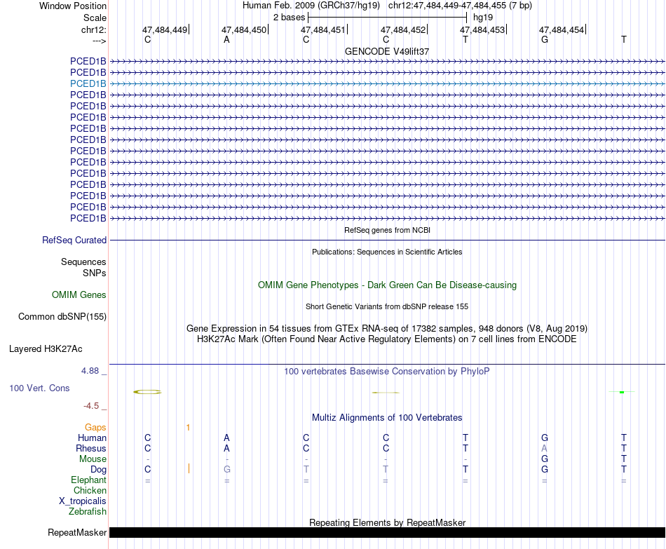 - PTF[chr12:47484449-47484455]