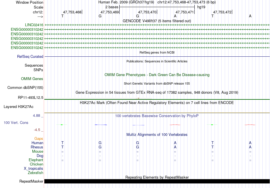 - GATA2[chr12:47753468-47753473]