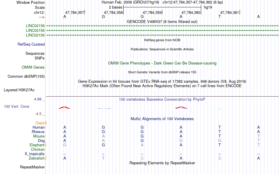 - GATA2[chr12:47784357-47784362]