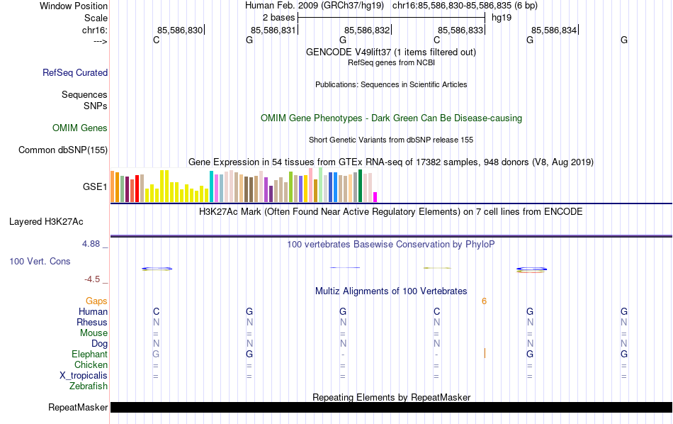 - SP1[chr16:85586830-85586835]