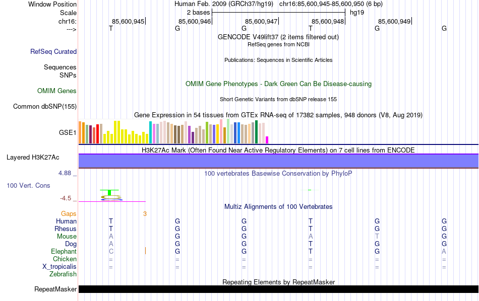 - SP1[chr16:85600945-85600950]