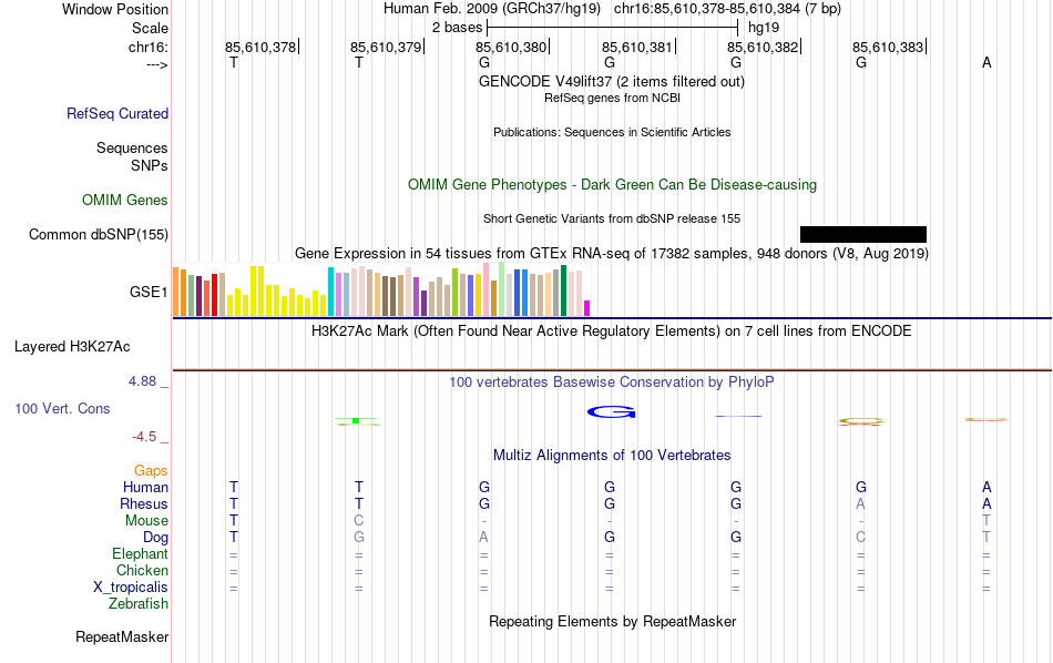 - MZF1[chr16:85610378-85610384]