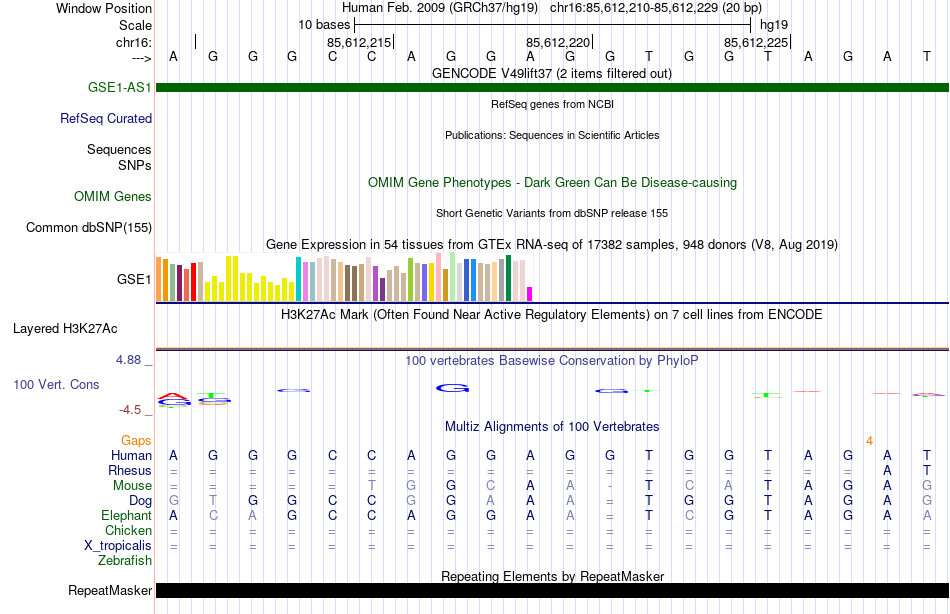- CTCF[chr16:85612210-85612229]