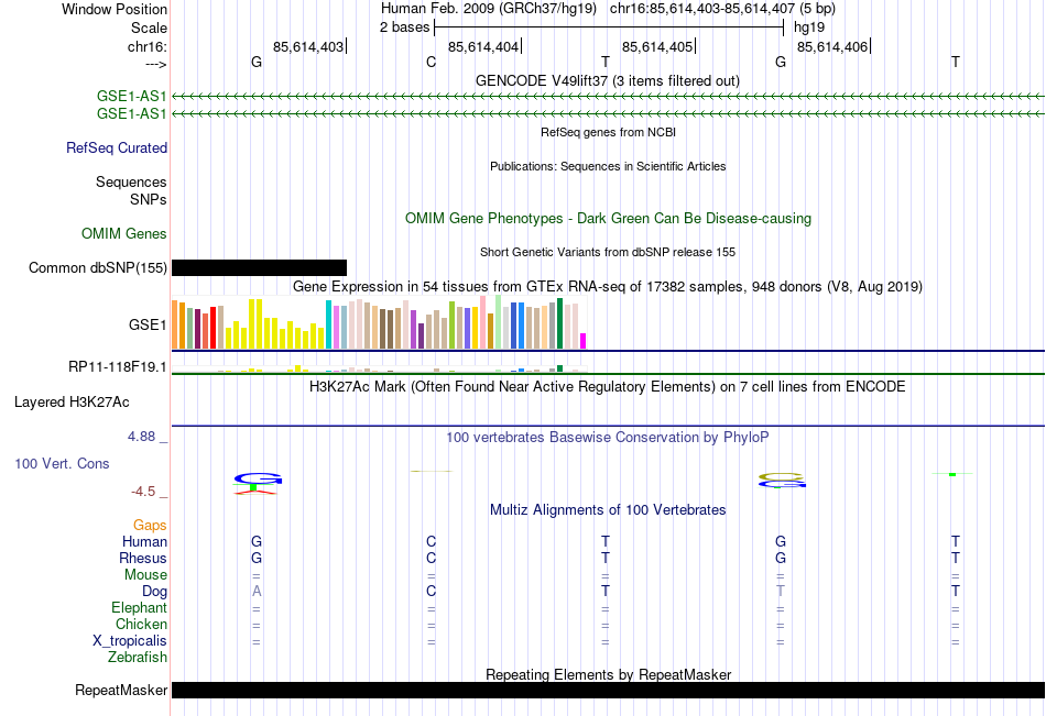 - NFE[chr16:85614403-85614407]