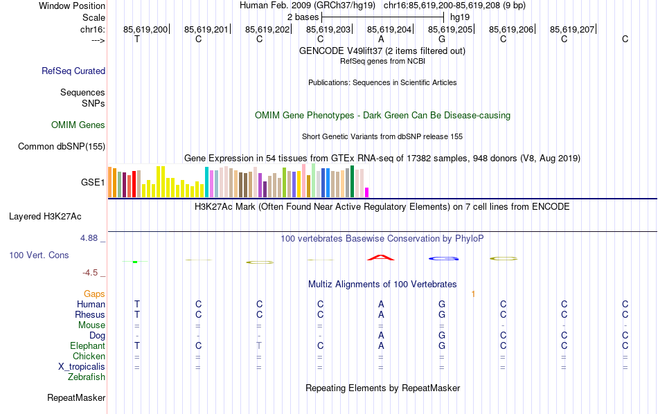 - SP1[chr16:85619200-85619208]