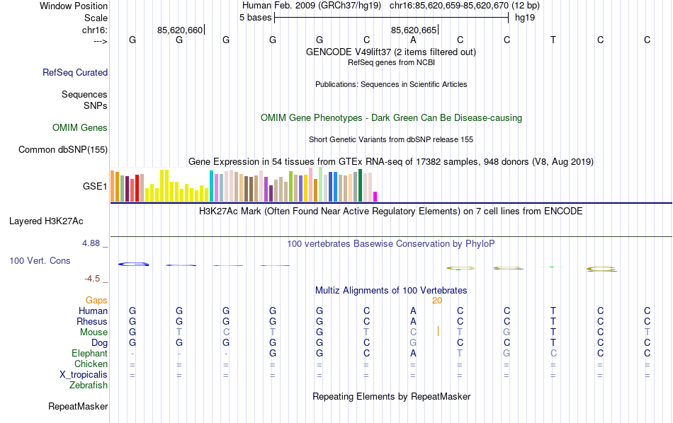 - NFKB1[chr16:85620659-85620670]