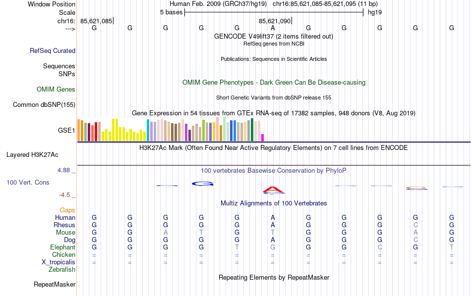 - SP1[chr16:85621085-85621095]