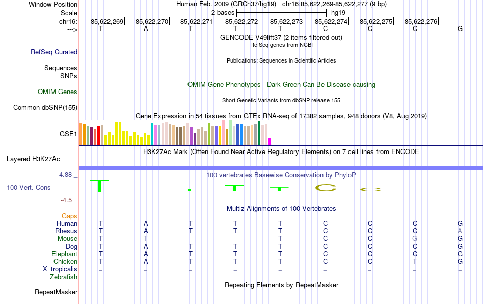 - FEV[chr16:85622269-85622277]