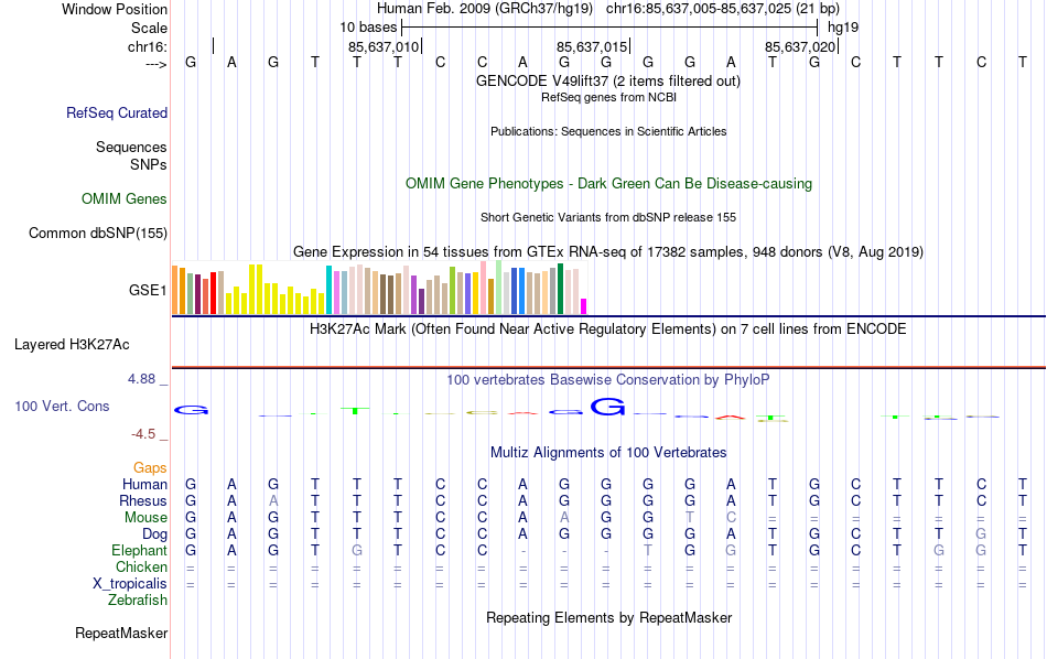 - TP53[chr16:85637005-85637025]