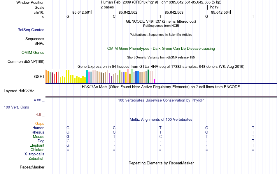 - NFE[chr16:85642561-85642565]