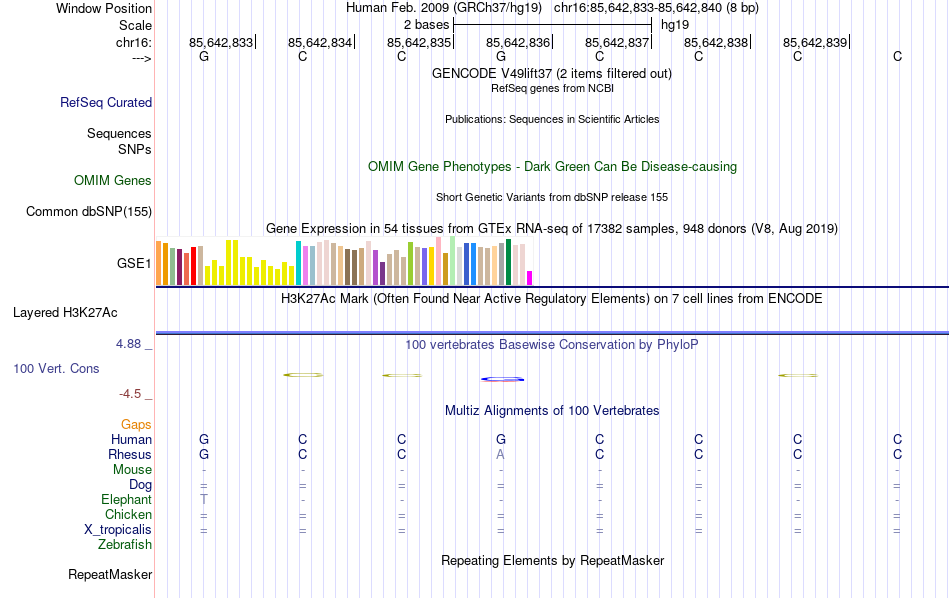 - SP1[chr16:85642833-85642840]