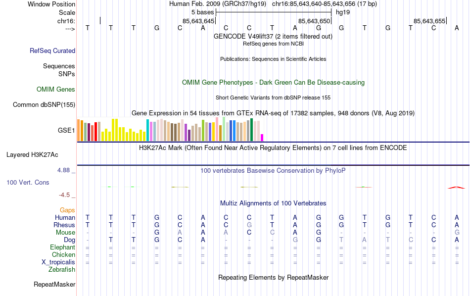 - T[chr16:85643640-85643656]