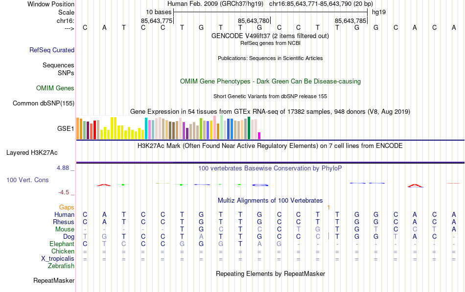 - RFX2[chr16:85643771-85643790]