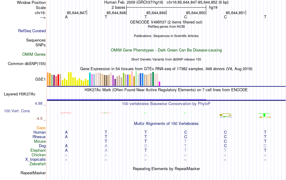 - ETS2[chr16:85644847-85644852]