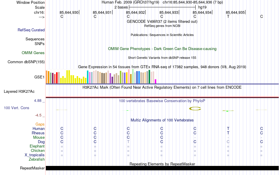 - SP1[chr16:85644930-85644936]