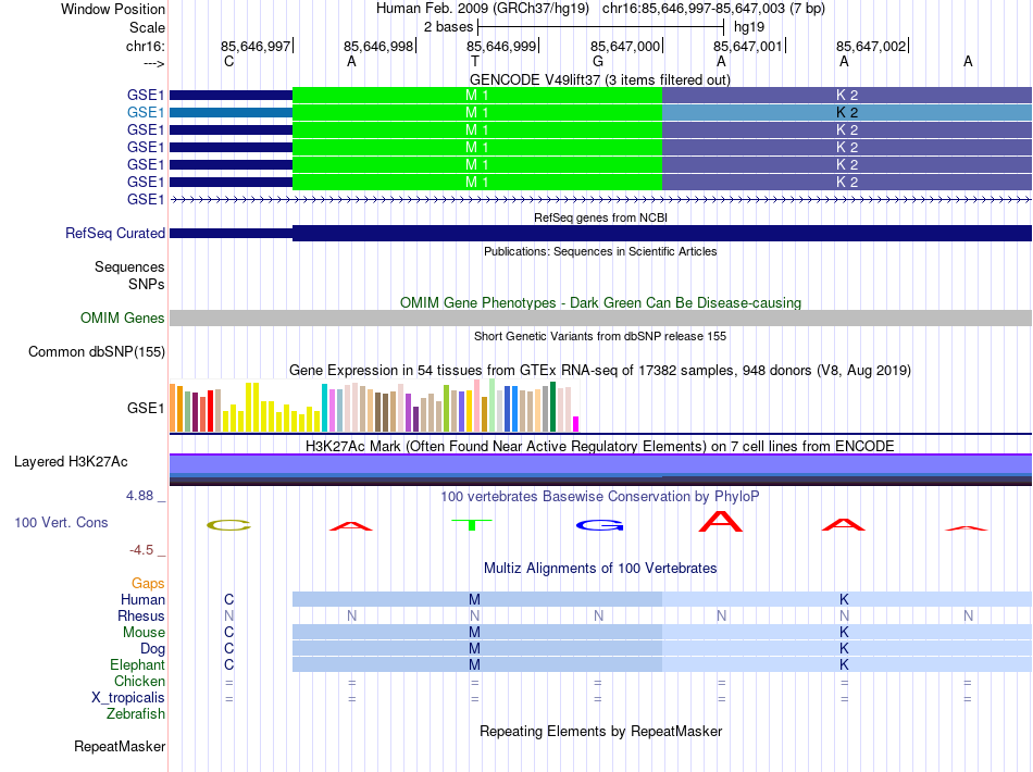 - TCF4[chr16:85646997-85647003]