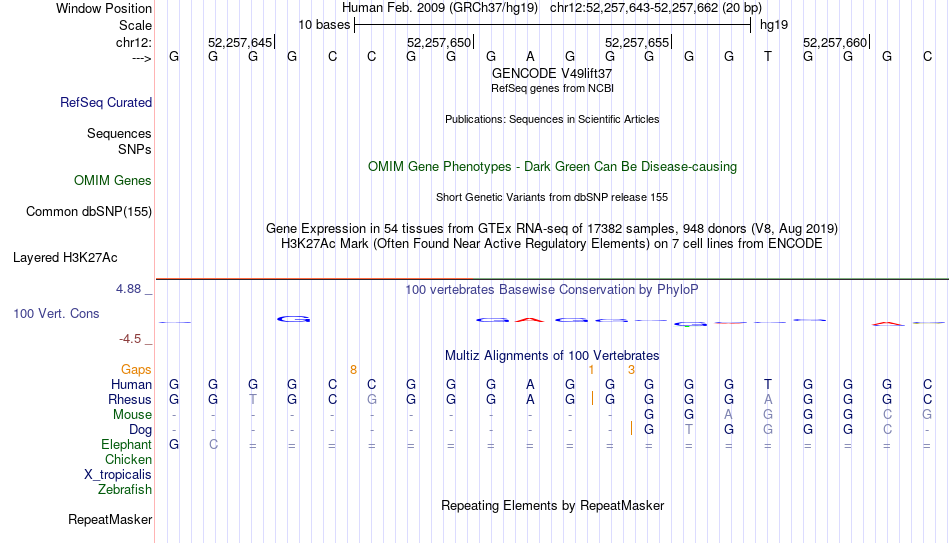 - CTCF[chr12:52257643-52257662]