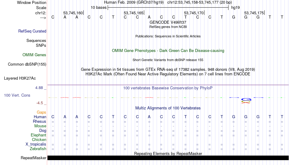 - CTCF[chr12:53745158-53745177]