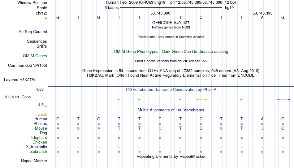 - FOXA1[chr12:53745385-53745396]