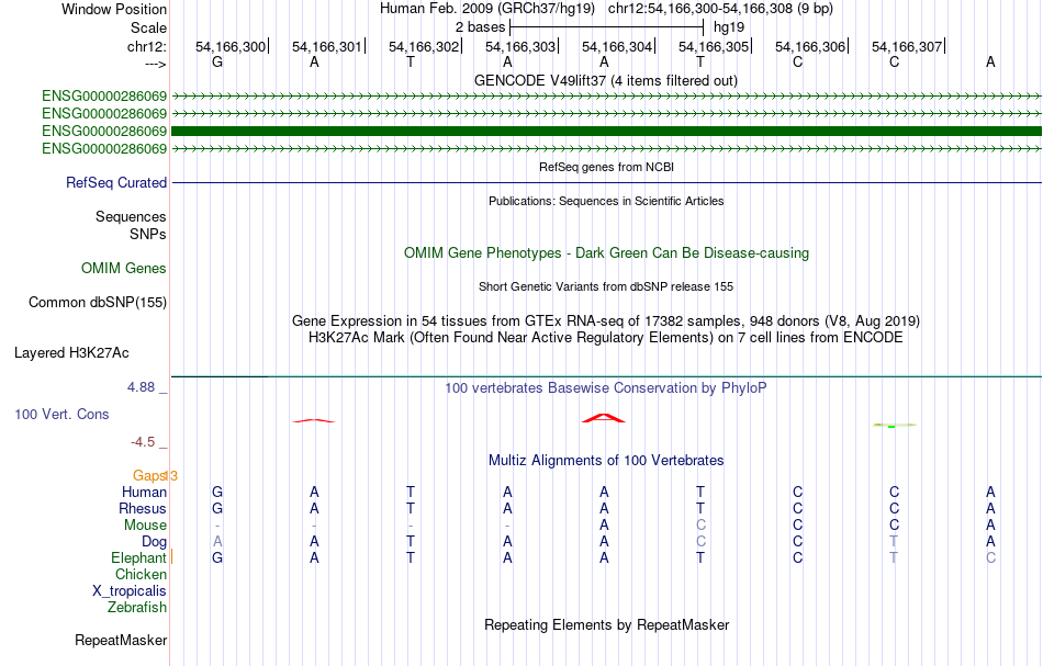 - RHOXF1[chr12:54166300-54166308]