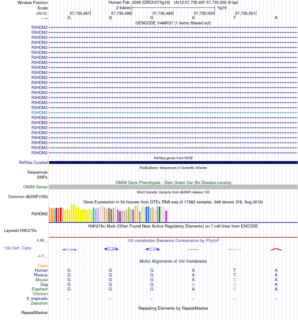 - GATA2[chr12:57735497-57735502]