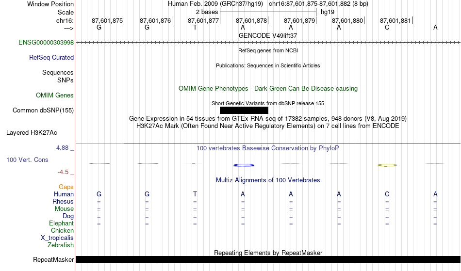 - FOXD2[chr16:87601875-87601882]