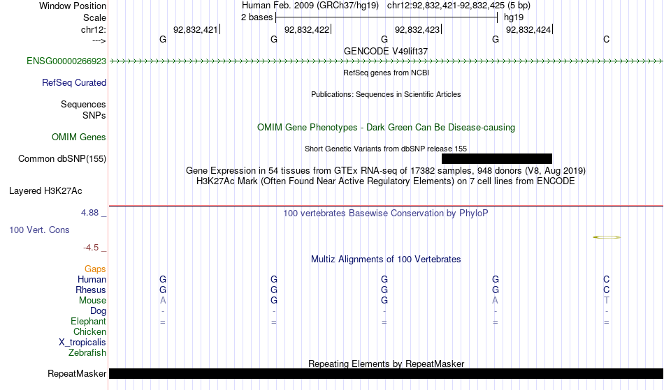 - LFA1[chr12:92832421-92832425]