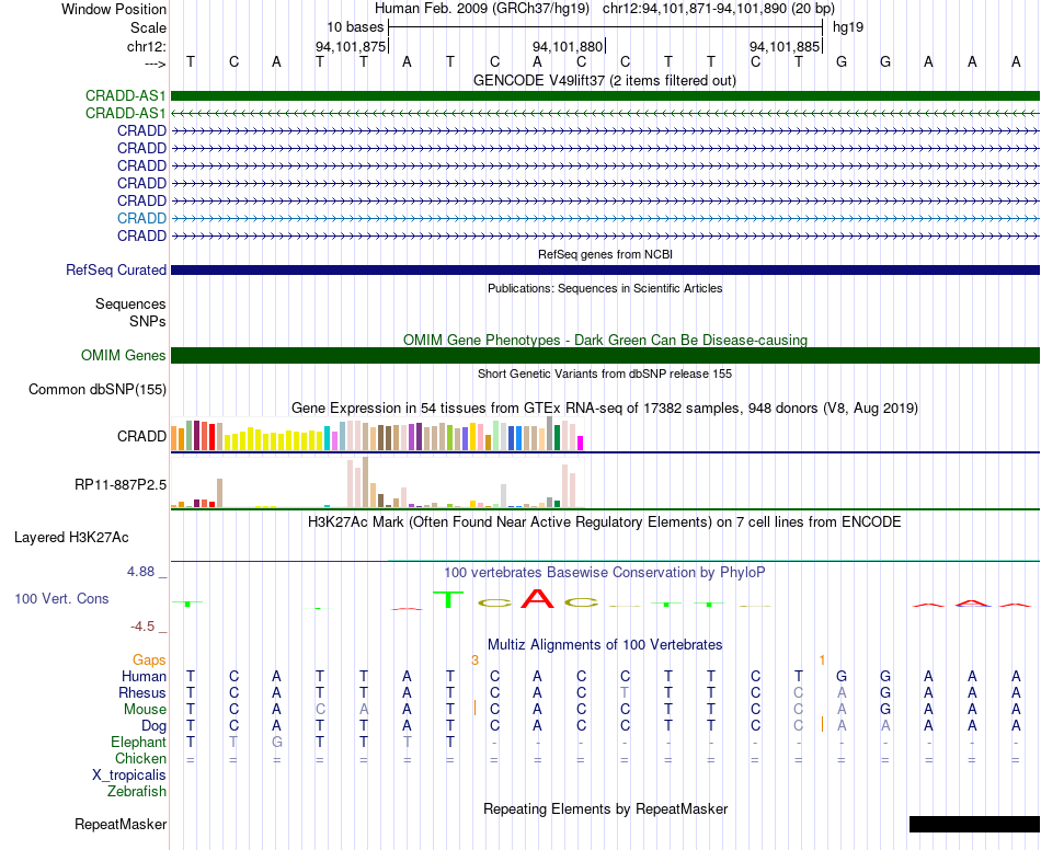 - CTCF[chr12:94101871-94101890]