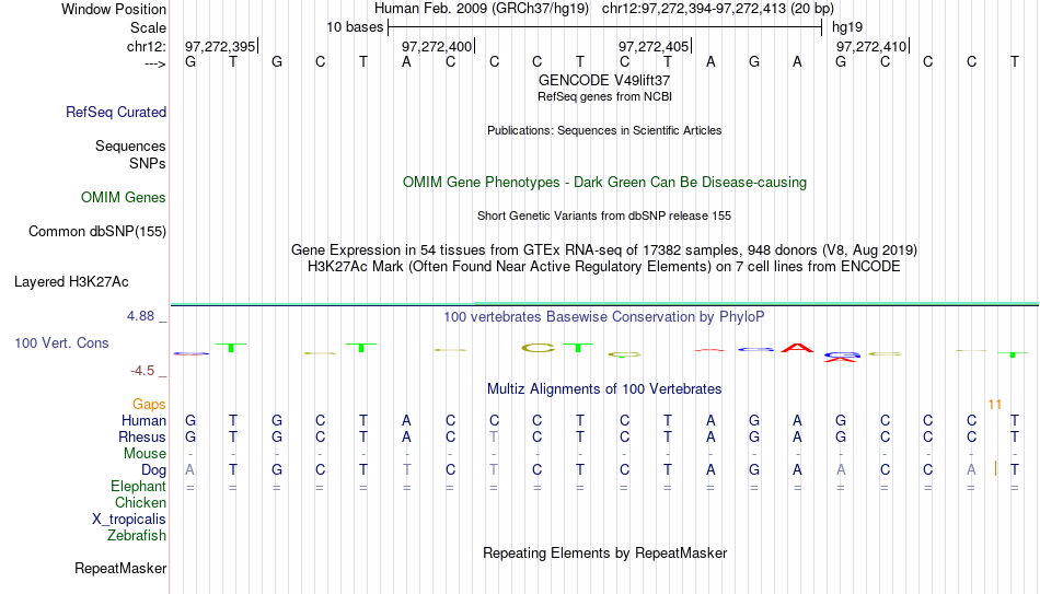 - CTCF[chr12:97272394-97272413]