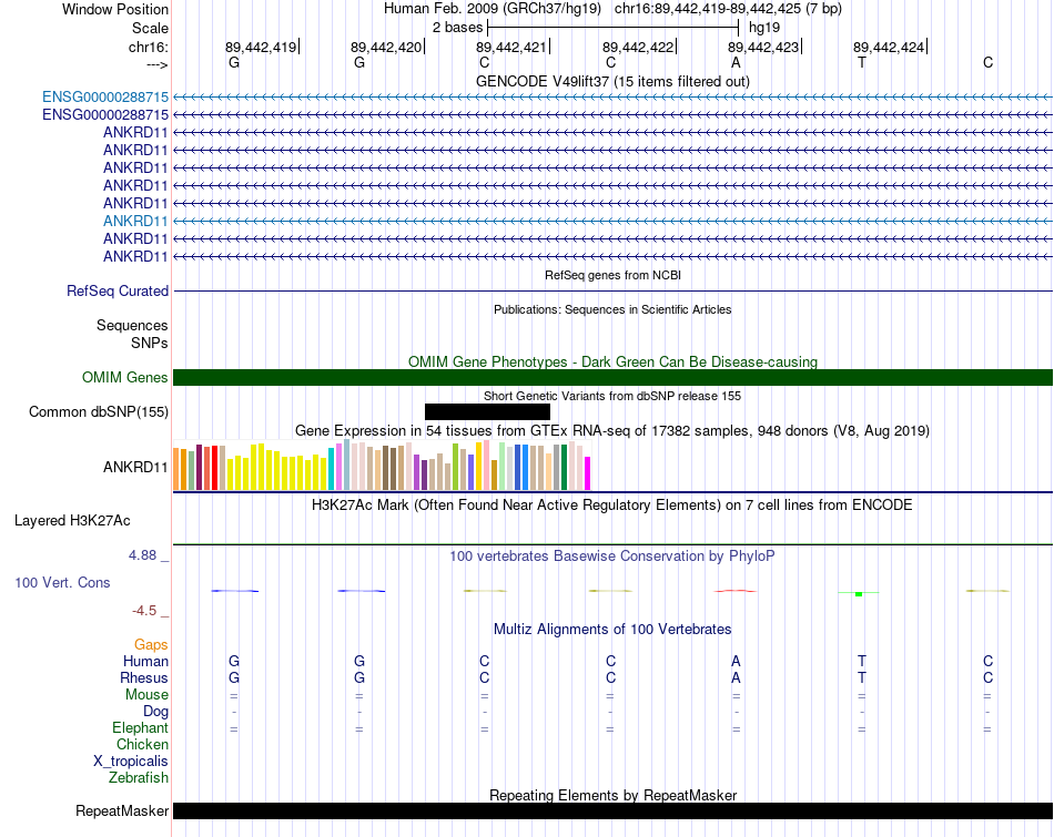 - YY1[chr16:89442419-89442425]