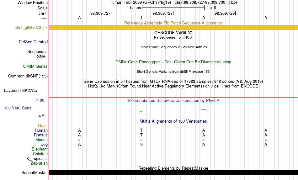 - MYB[chr7:98309727-98309730]